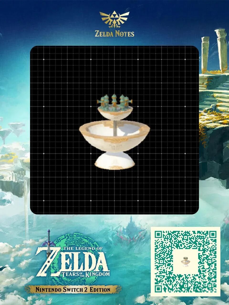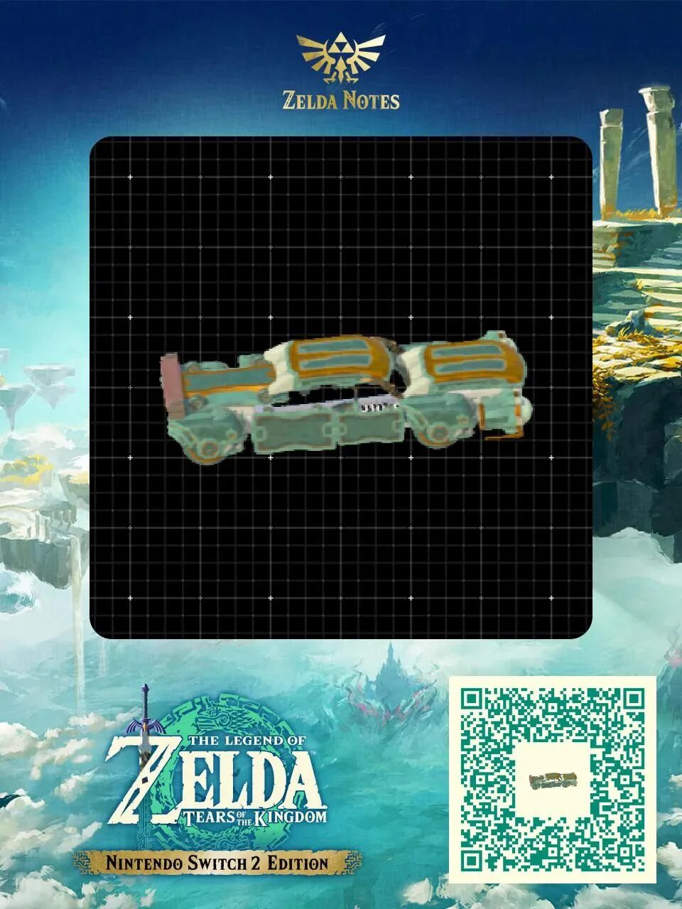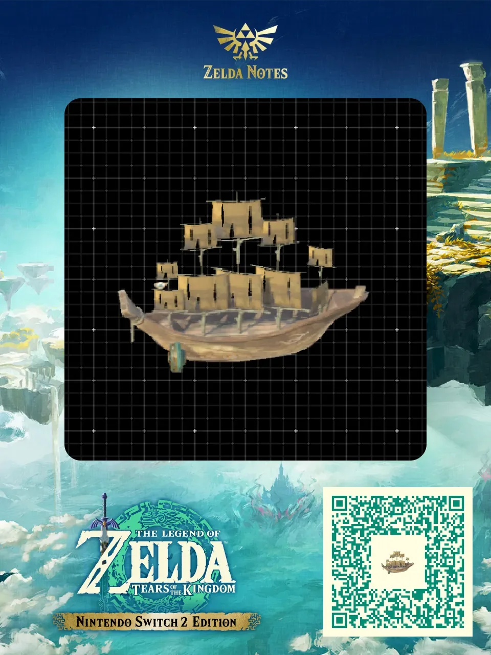 作品名に【QR】のついてるものは、「Nintendo Switch App」>「ZELDA NOTES」>「ゼルダの伝説ティアキン」>「QRブループリント」を起動して、QRコードを読み込んでみてね!